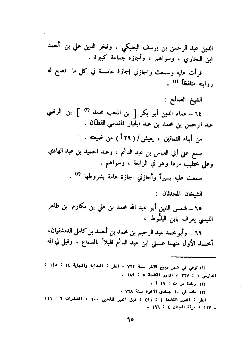 66 - وَأَبُو مُحَمَّد عبد الرَّحِيم بن مُحَمَّد بن احْمَد بن كَامِل الدمشقيان أَخذ الأول مِنْهُمَا على ابْن عبد الدَّائِم قَلِيلا بِالسَّمَاعِ وَقيل لي أَنه