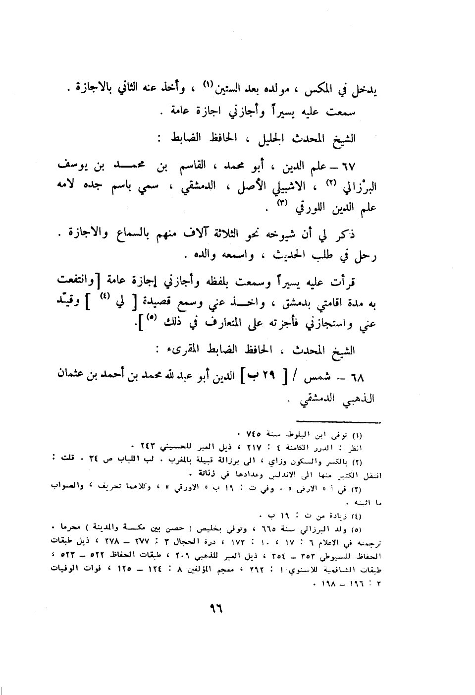 67 - علم الدّين أَبُو مُحَمَّد الْقَاسِم بن مُحَمَّد بن يُوسُف البرزالي الاشبيلي الأَصْل الدِّمَشْقِي سمي باسم جده لأمه علم الدّين اللورقي