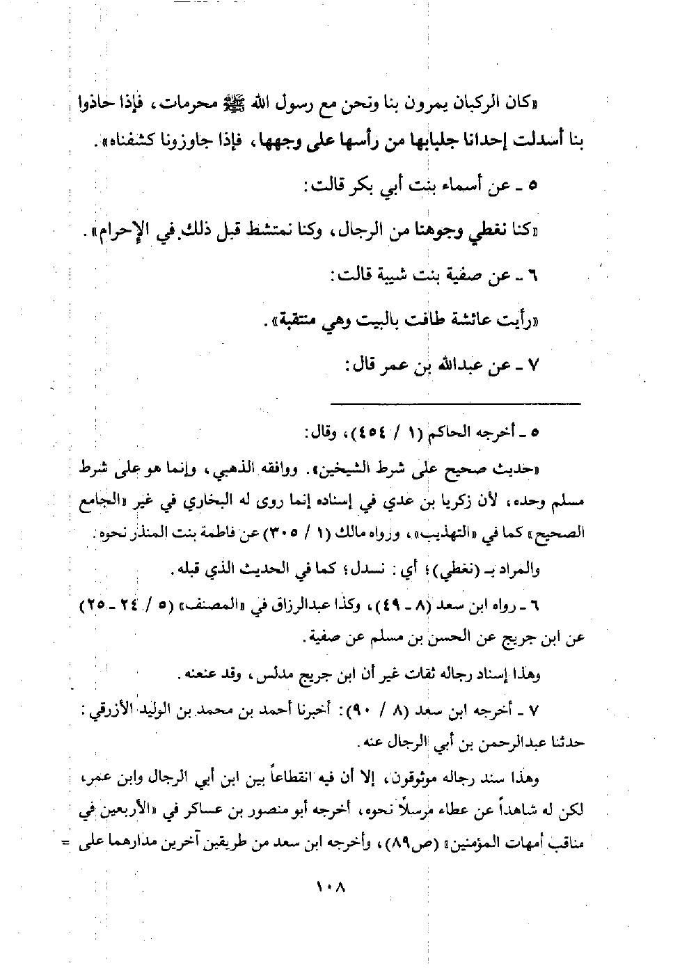 "رأيت عائشة طافت بالبيت وهي منتقبة".