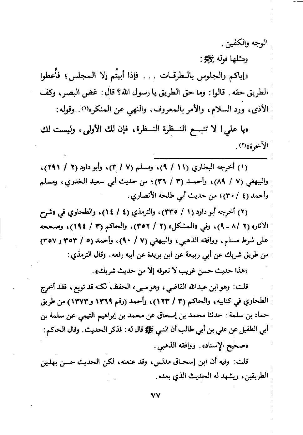 "يا علي! لا تتبع النظرة النظرة فإن لك الأولى وليست لك الآخرة" 2.