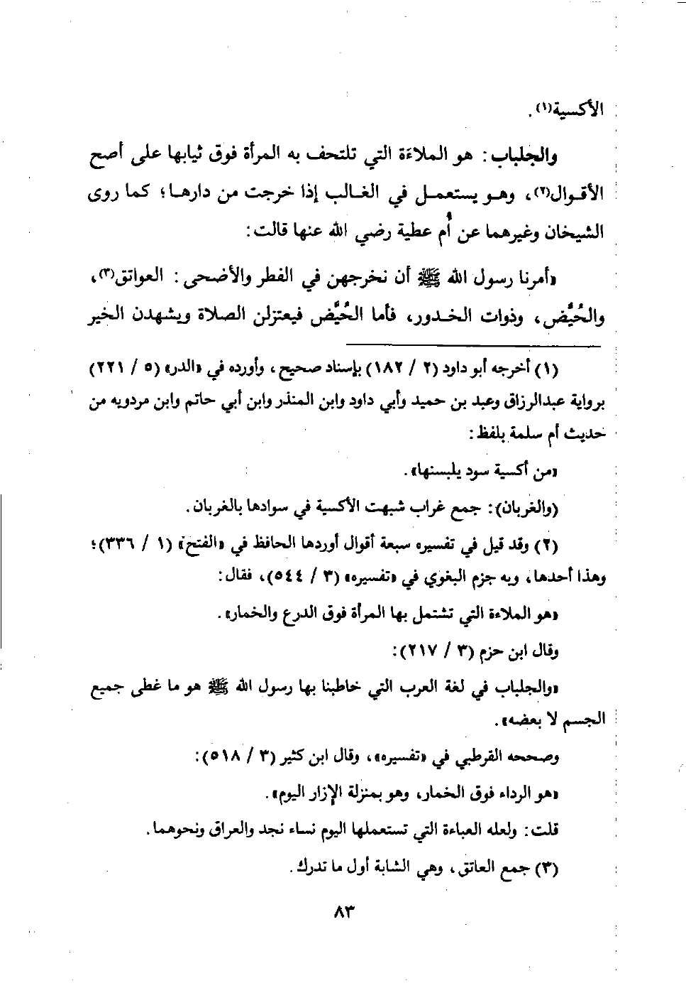 قلت: ولعله العباءة التي تستعملها اليوم نساء نجد والعراق ونحوهما.