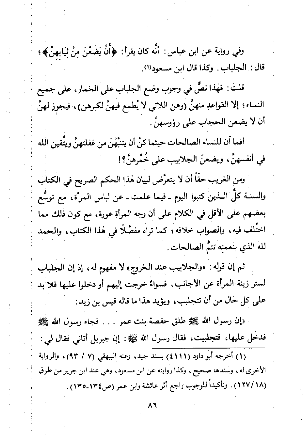1 أخرجه أبو داود "4111" بسند جيد، وعنه البيهقي "7/ 93"، والرواية الأخرى له، وسندها صحيح، وكذا روايته عن ابن مسعود، وهي عند ابن جرير من طرق "18/ 127"، وتأكيدًا للوجوب راجع أثر عائشة وابن عمر "ص134-135".