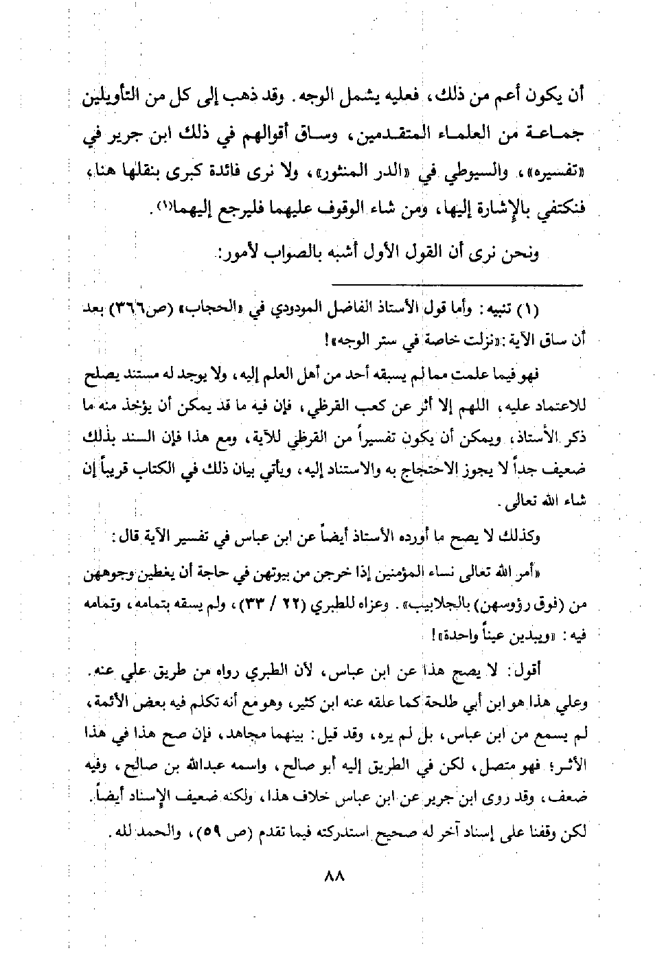 1 تنبيه: وأما قول الأستاذ الفاضل المودودي في "الحجاب" "ص366" بعد أن ساق الآية: "نزلت خاصة في ستر الوجه"!