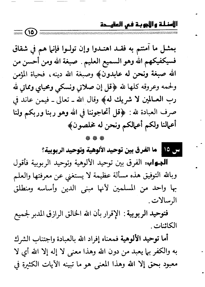 س15/ ما الفرق بين توحيد الألوهية وتوحيد الربوبية؟