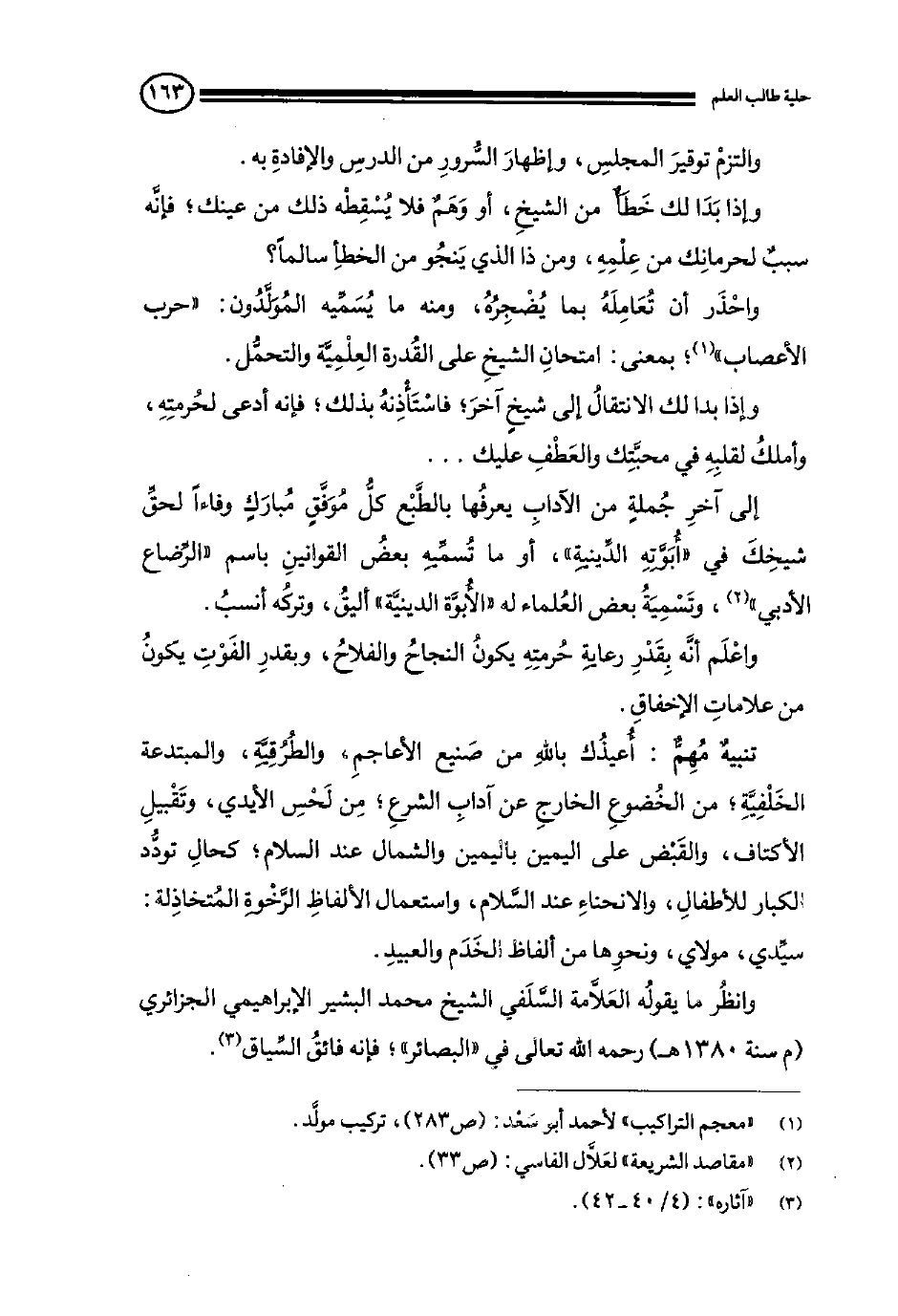 وانظر ما يقوله العلامة السلفي الشيخ محمد البشير الإبراهيمي الجزائري (م سنة 1380 هـ) رحمه الله تعالى في "البصائر"؛ فإنه فائق السياق (¬3) .