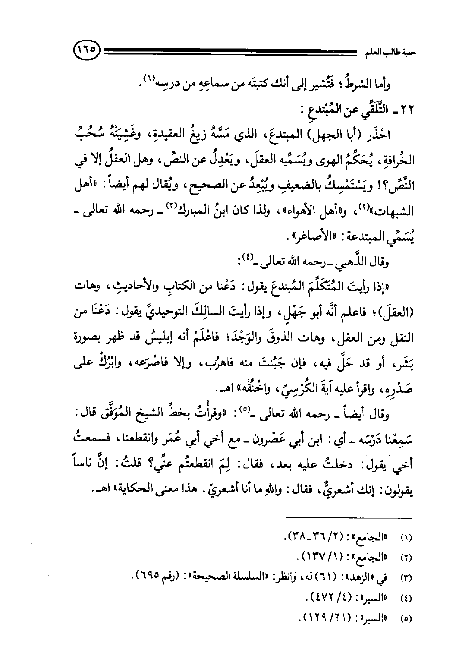 احذر "أبا الجهل" المبتدع، الذي مسه زيغ العقيدة، وغشيته سحب الخرافة، يحكم الهوى ويسميه العقل، ويعدل عن النص، وهل العقل إلا في النص؟! ويستمسك بالضعيف ويبعد عن الصحيح، ويقال لهم أيضاً: "أهل الشبهات" (¬2) ، و "أهل الأهواء"، ولذا كان ابن المبارك (¬3) رحمه الله تعالى يسمى المبتدعة: "الأصاغر".