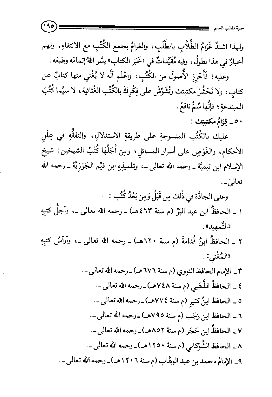 وعليه فاحذر الأصول من الكتب واعلم أنه لا يغنى منها كتاب عن كتاب، ولا تحشر مكتبتك وتشوش على فكرك بالكتب الغثائية، لا سيما كتب المبتدعة، فإنها سم ناقع.