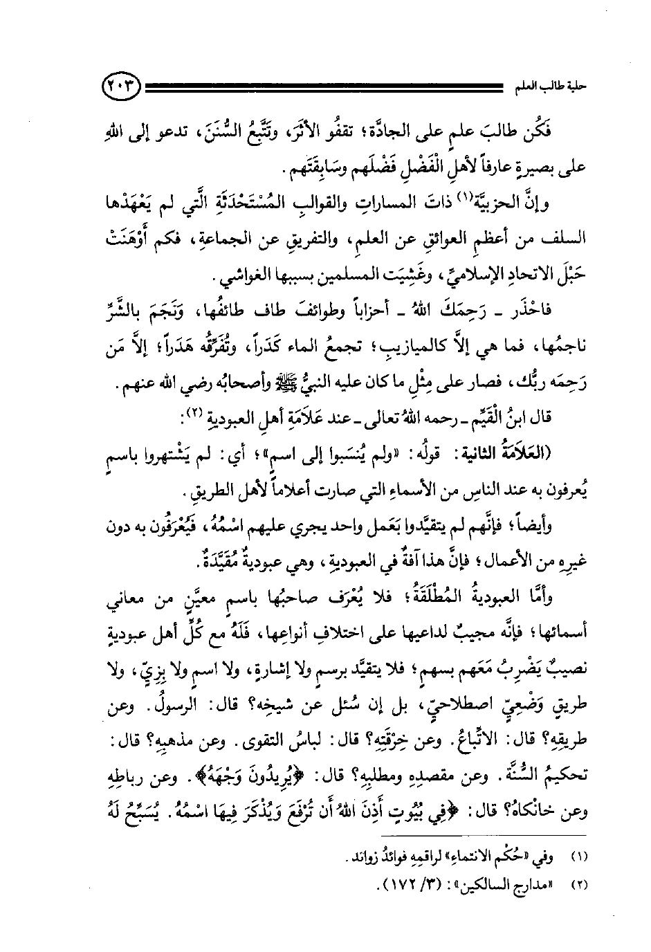 فكن طالب علم على الجادة؛ تقفو الأثر، وتتبع السنن، تدعو إلى الله على بصيرة، عارفاً لأهل الفضل فضلهم وسابقتهم.