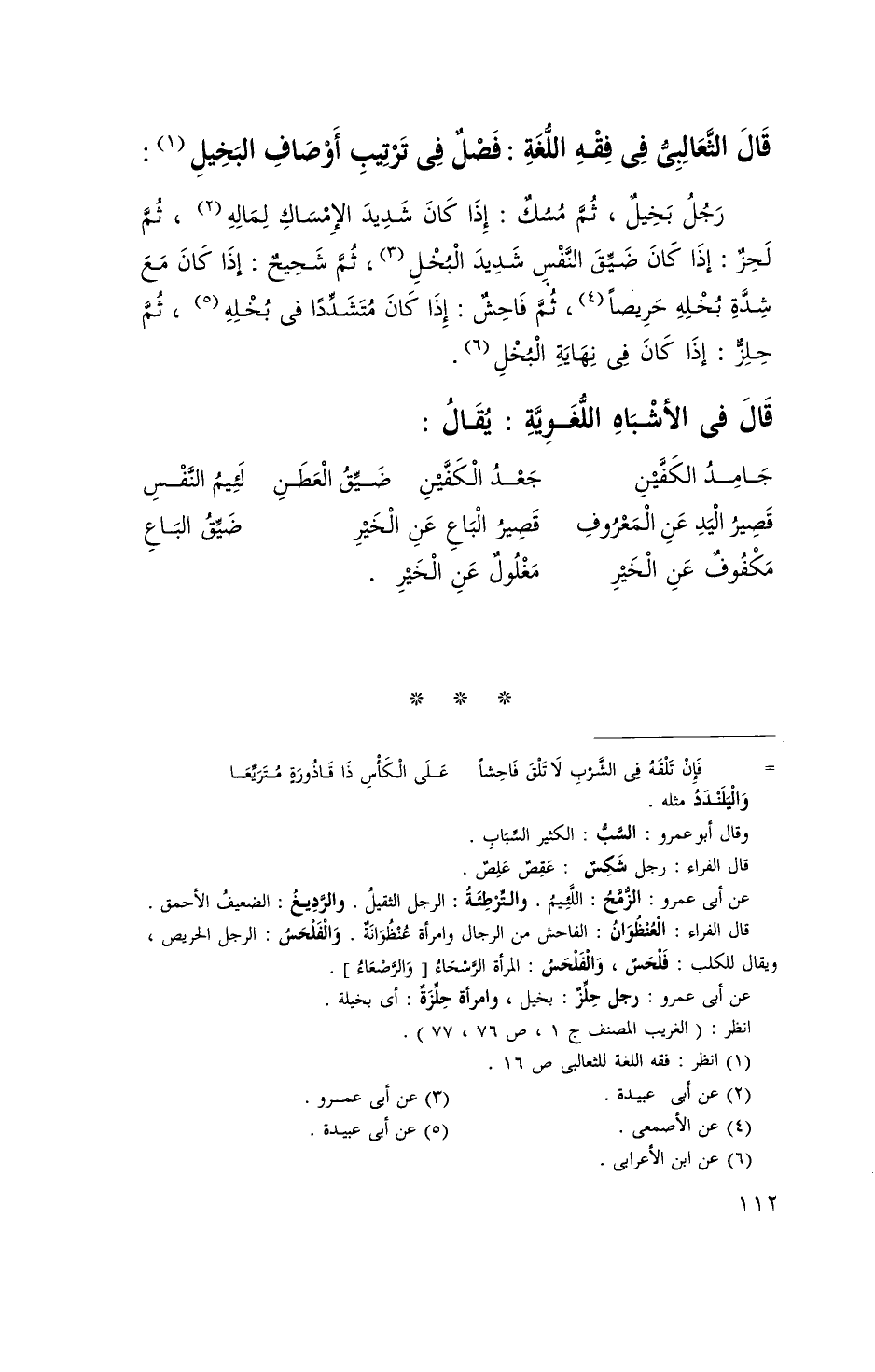 قَالَ الثعالبي فِي فقه اللُّغَة