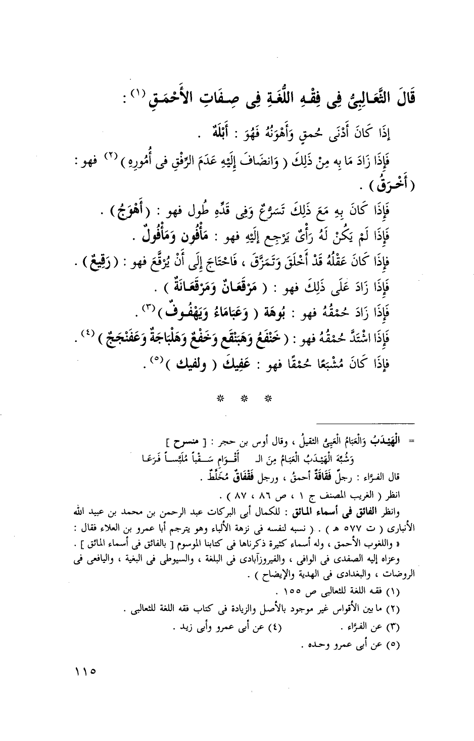قَالَ الثعالبى فِي فقه اللُّغَة فِي صِفَات الأحمق