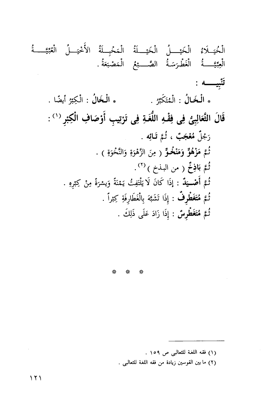 قَالَ الثعالبي فِي فقه اللُّغَة فِي تَرْتِيب أَوْصَاف الْكبر