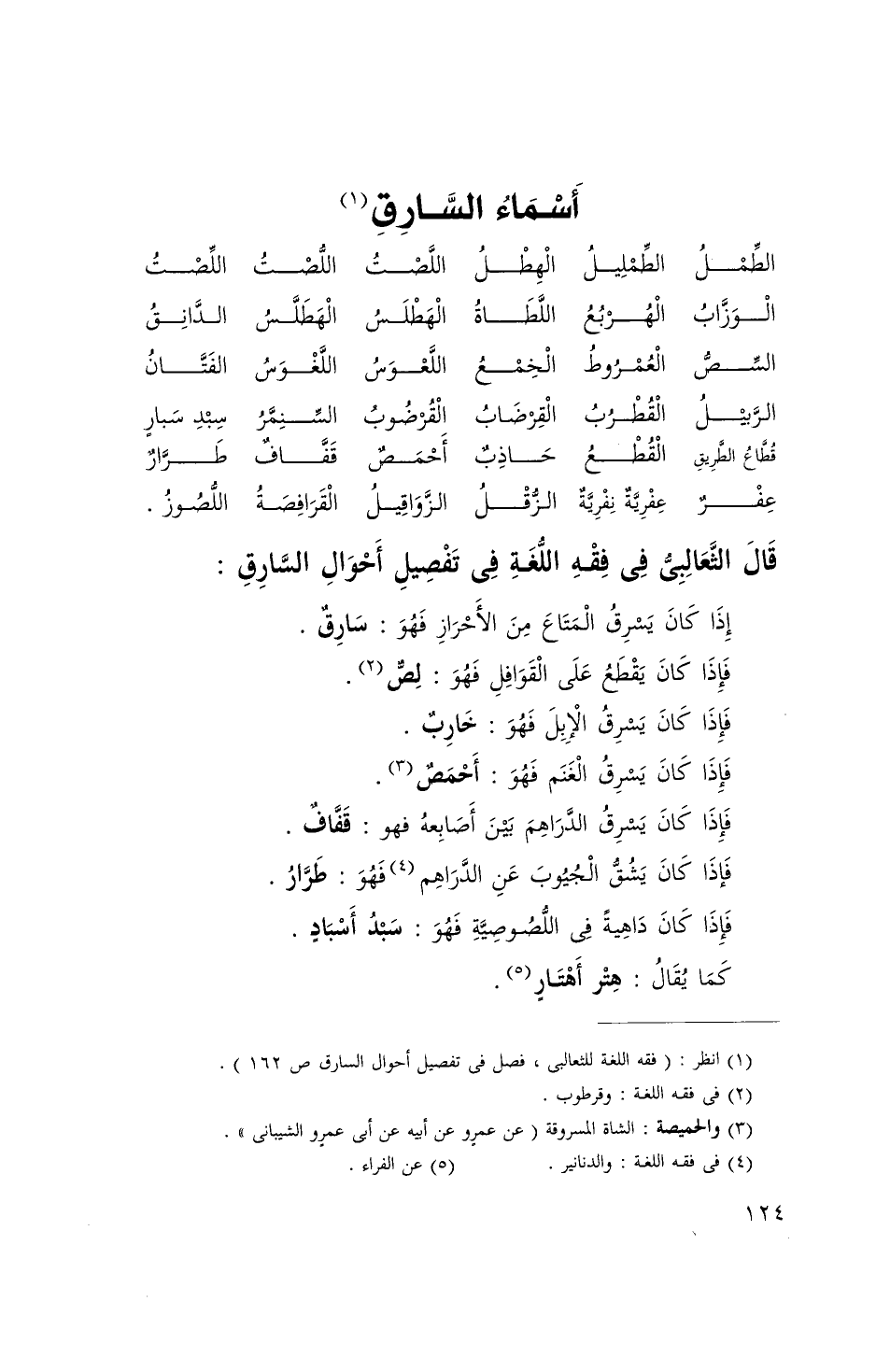 قَالَ الثعالبي فِي فقة اللُّغَة فِي تَفْصِيل أَحْوَال السَّارِق