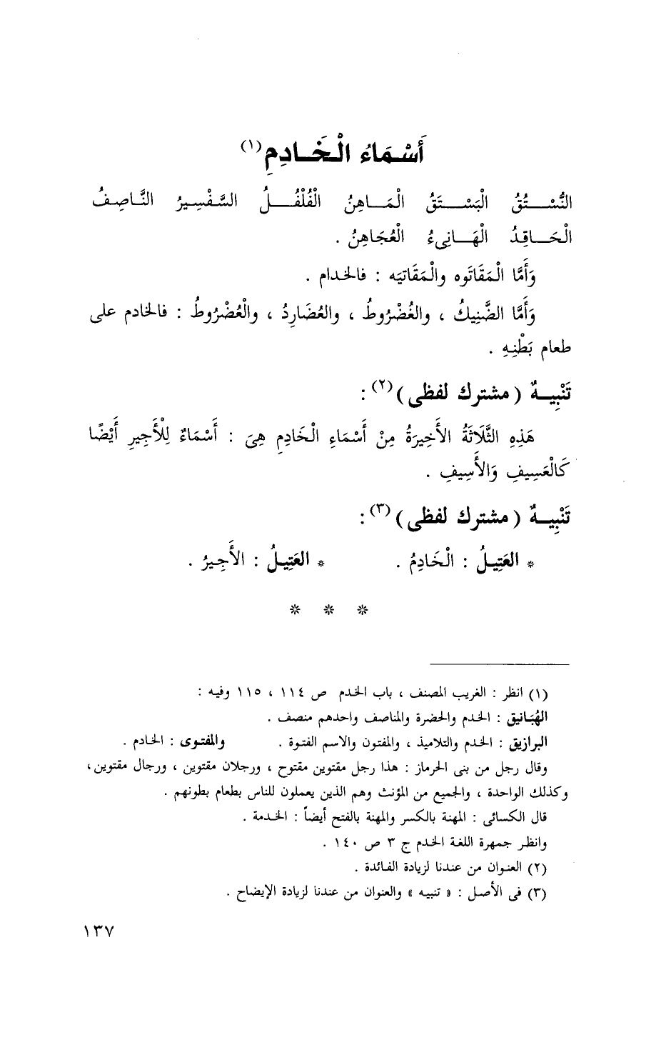 هَذِه الثَّلَاثَة الْأَخِيرَة من أَسمَاء الْخَادِم هِيَ أَسمَاء للْأَجِير أَيْضا كالعسيف والأسيف