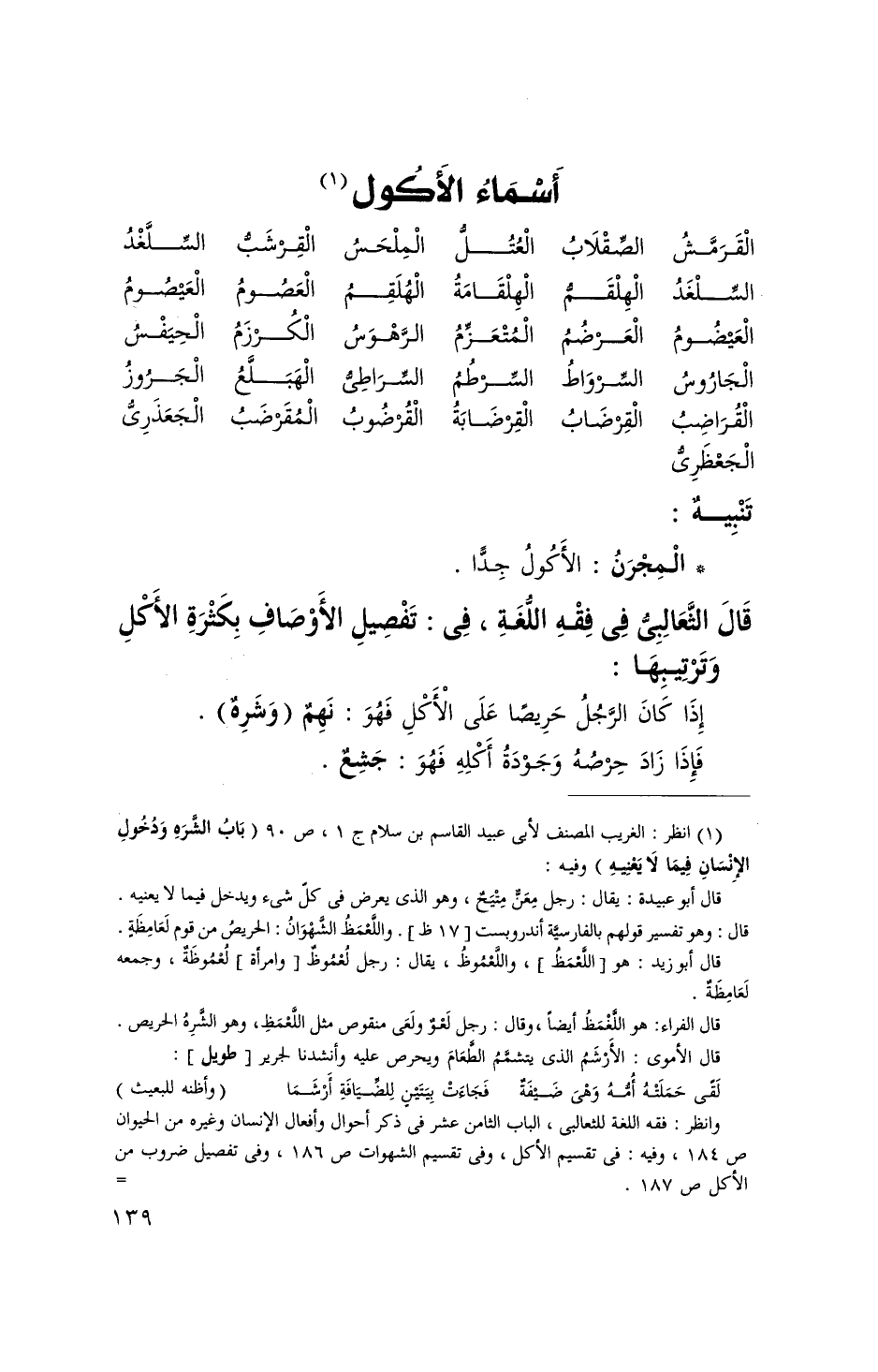 قَالَ الثعالبي فِي فقه اللُّغَة فِي تَفْصِيل الْأَوْصَاف بِكَثْرَة الْأكل وترتيبها