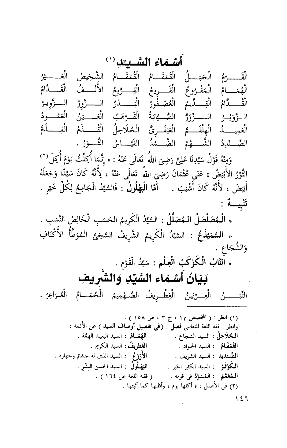 السَّيِّد الْكَرِيم الشريف السخى الْمُوَطَّأ الأكناف والشجاع