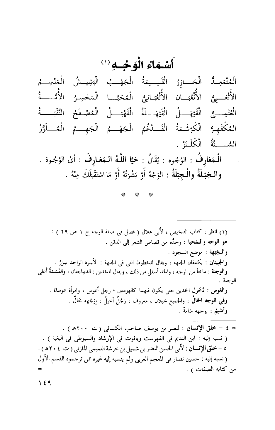 المعارف: الْوُجُوه: يُقَال: حَيا الله المعارف: أى الْوُجُوه