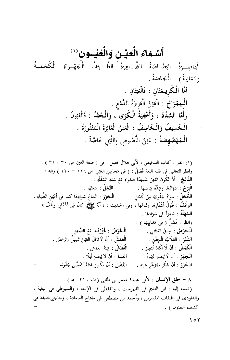 أَسمَاء الْعين والعيون