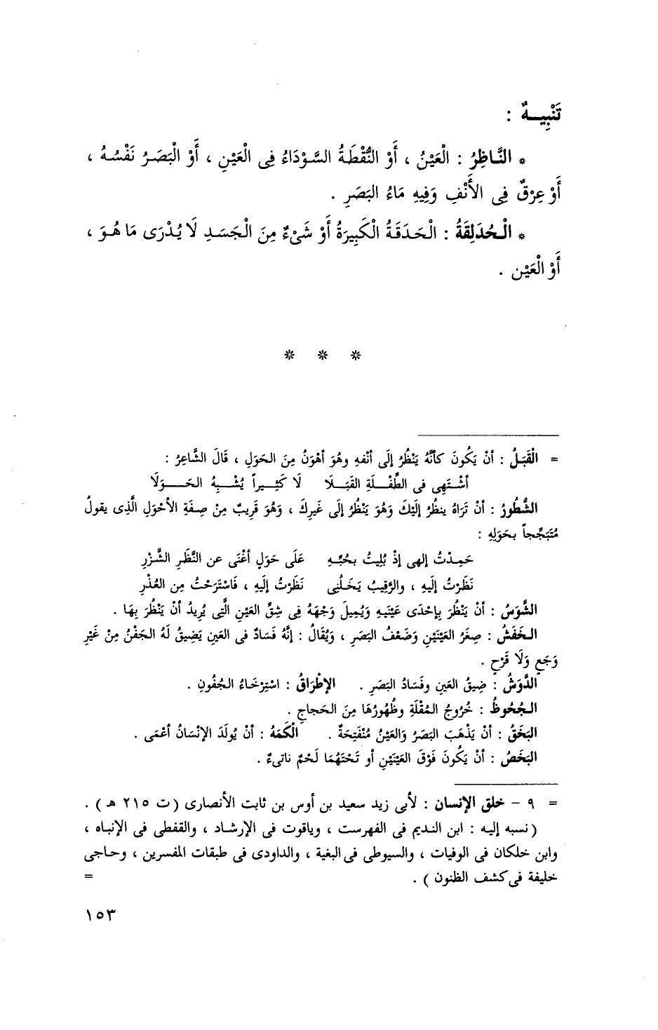 الْعين أَو النقطة السَّوْدَاء فِي الْعين أَو الْبَصَر نَفسه أَو عرق فِي الْأنف وَفِيه مَاء الْبَصَر