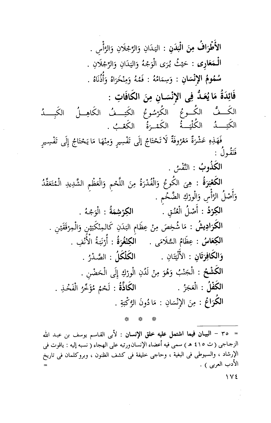 فَائِدَة مَا يعد فِي الْإِنْسَان من الكافات
