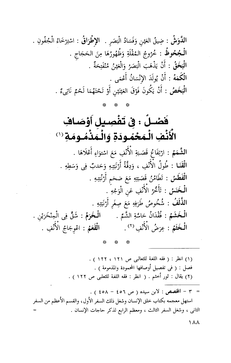 فصل فِي تَفْصِيل أَوْصَاف الْأنف المحمودة والمذمومة
