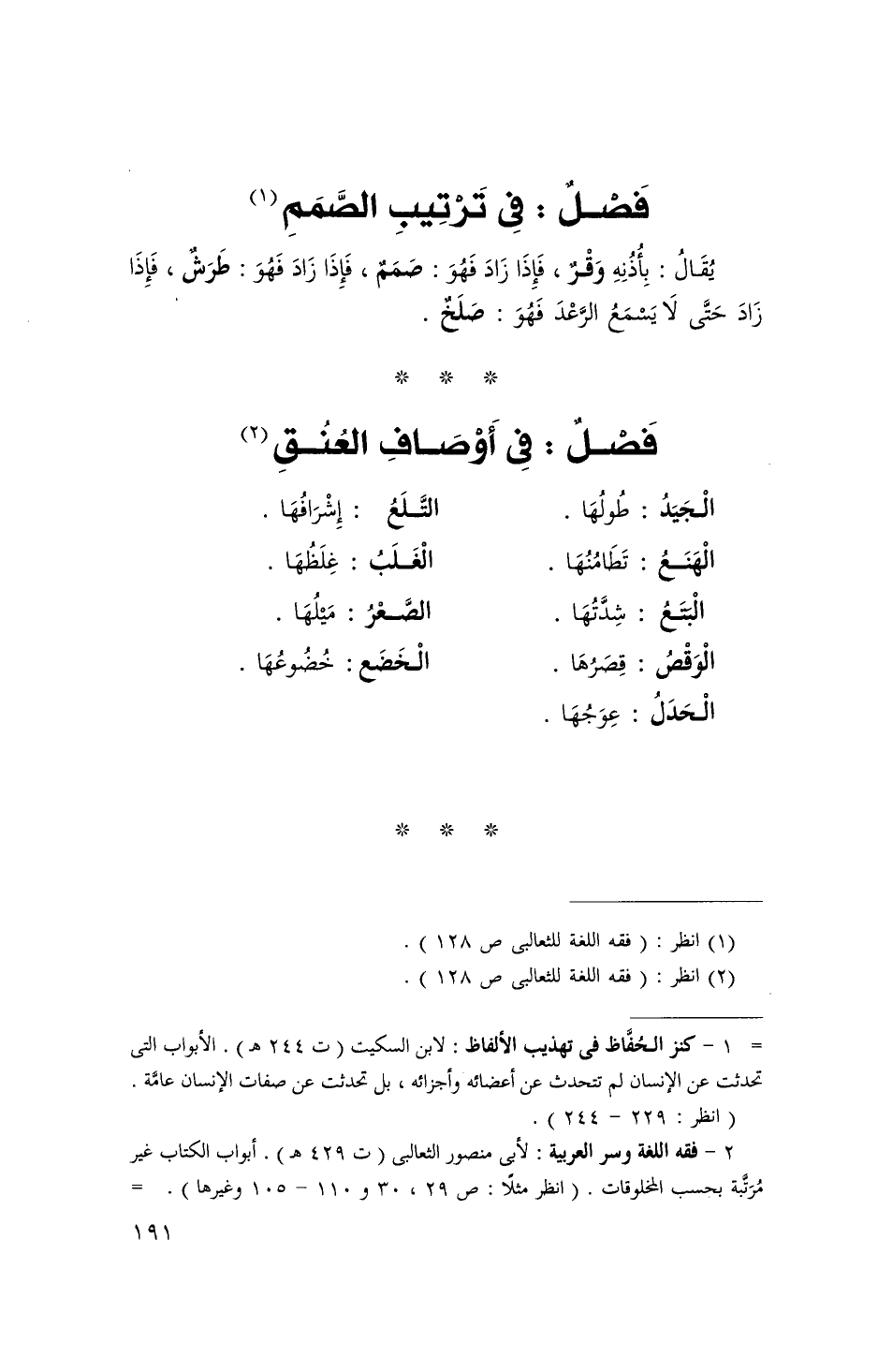 فصل فِي أَوْصَاف الْعُنُق