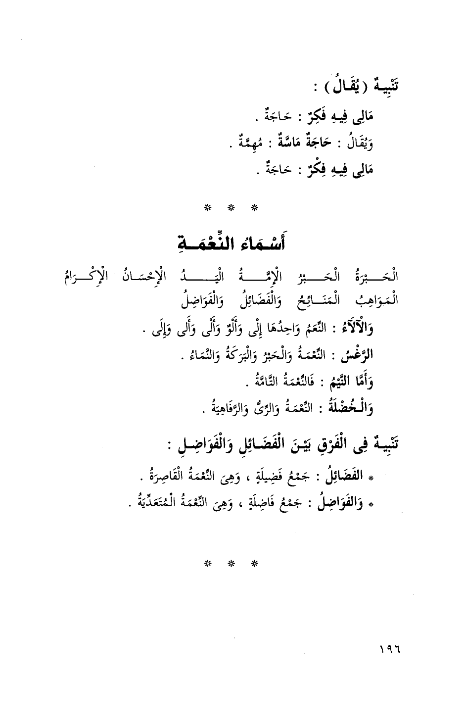 جمع فَضِيلَة وَهِي النِّعْمَة القاصرة