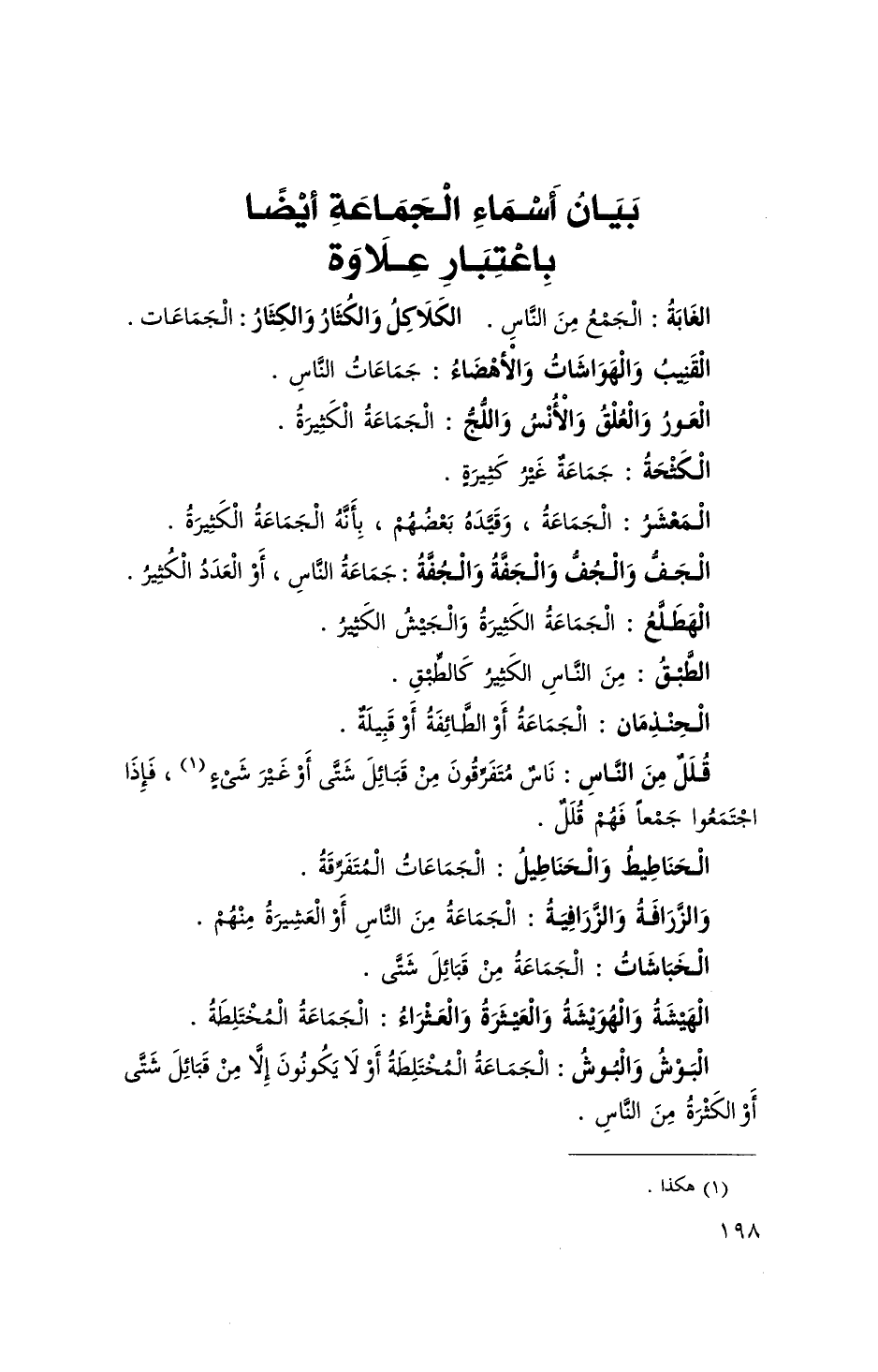 بَيَان أَسمَاء الْجَمَاعَة أَيْضا بأعتبار علاوة