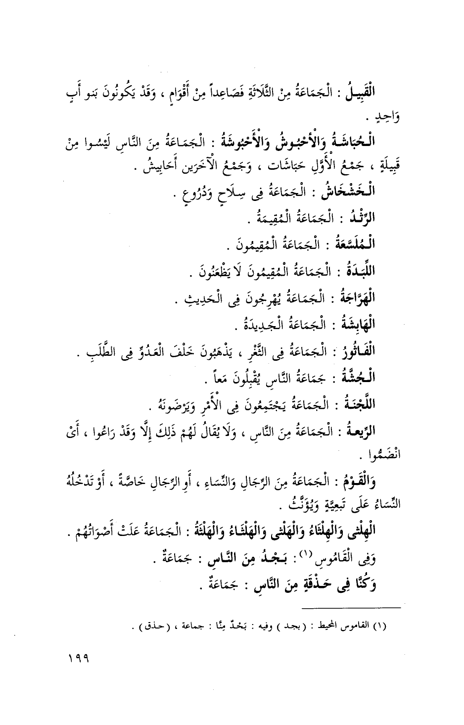 الْجَمَاعَة من الثَّلَاثَة فَصَاعِدا من أَقوام وَقد يكونُونَ بَنو أَب وَاحِد