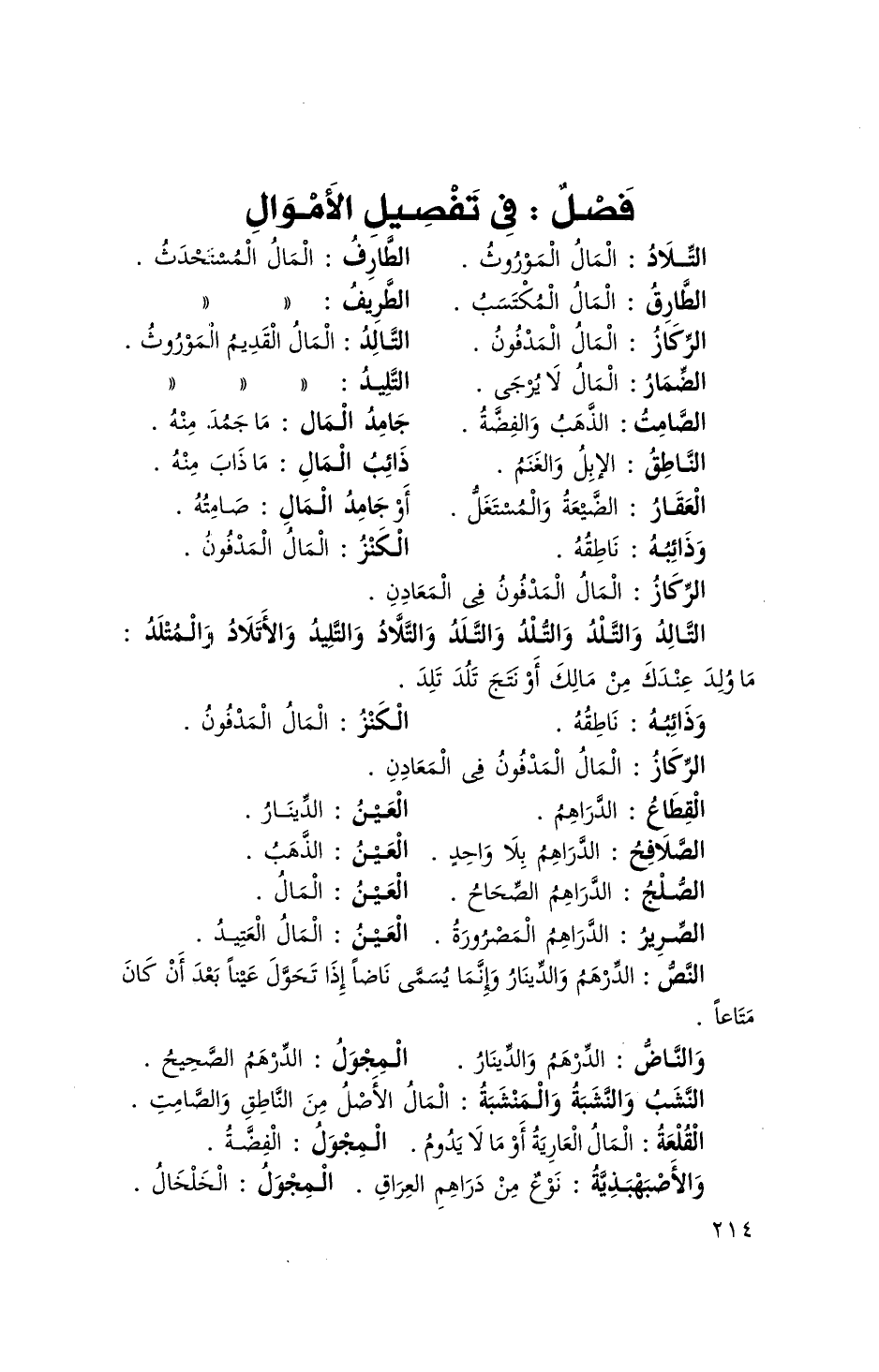 فصل فِي تَفْصِيل الْأَمْوَال