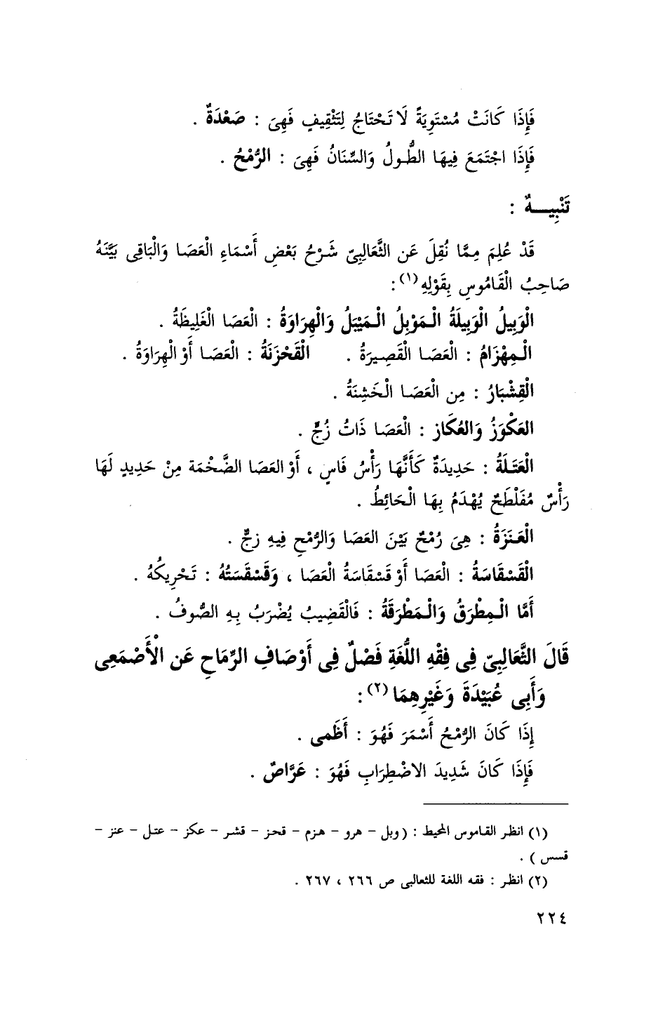 قَالَ الثعالبى فِي فقه اللُّغَة