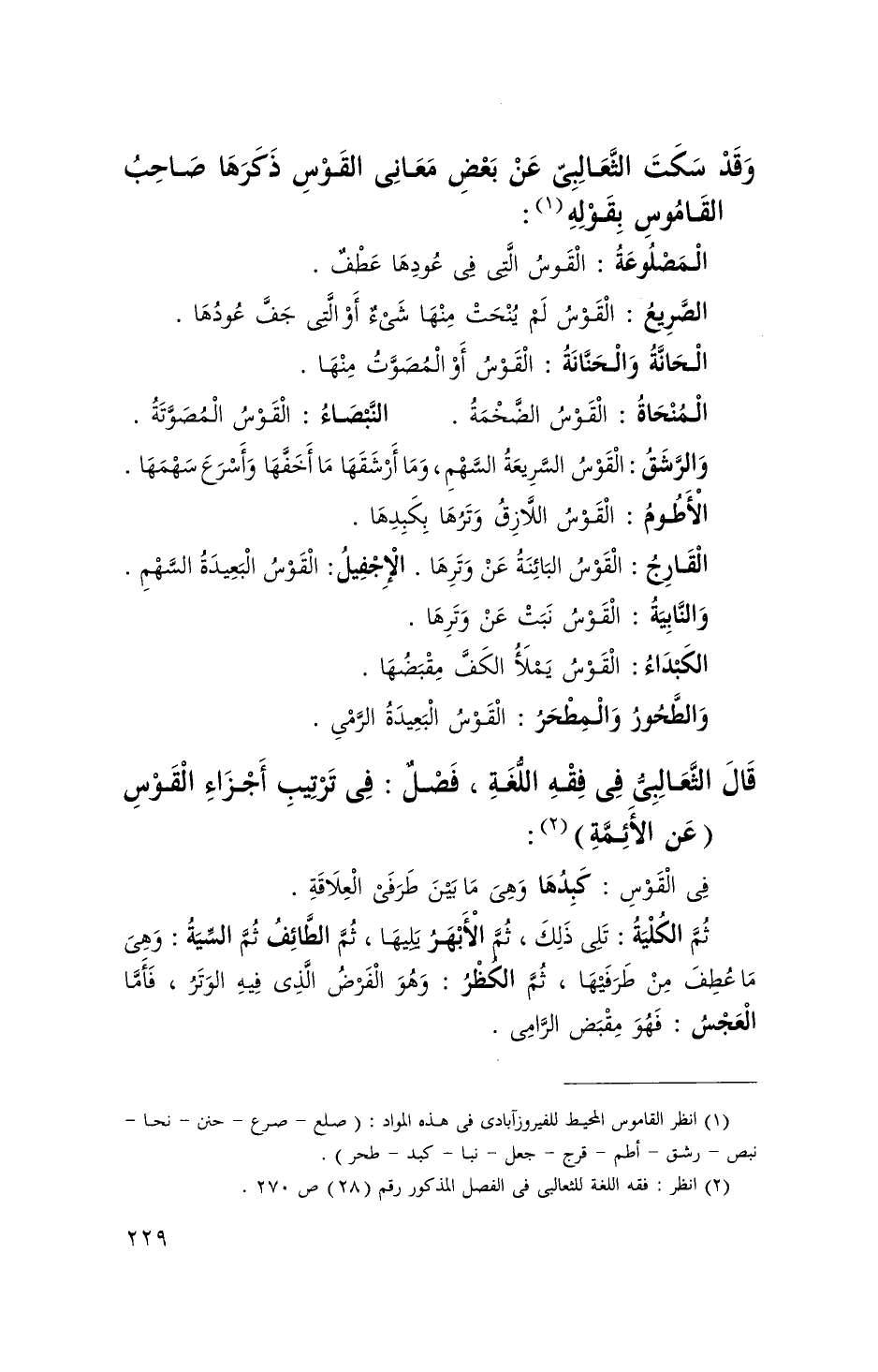 وَقد سكت الثعالبي عَن بعض معانى الْقوس ذكرهَا صَاحب الْقَامُوس بقوله