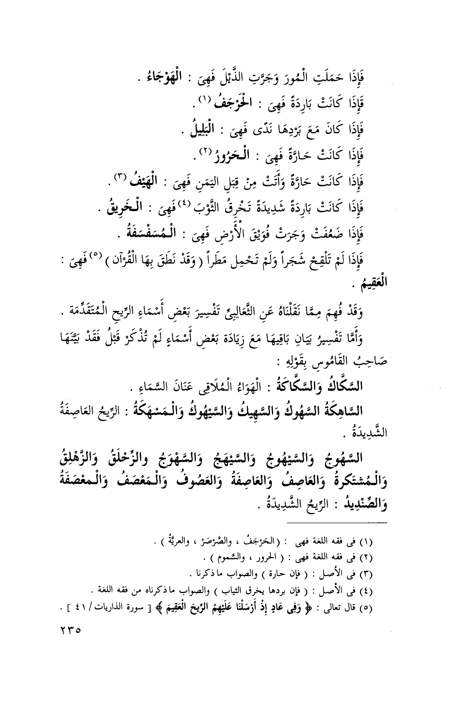 وَقد فهم مِمَّا نَقَلْنَاهُ عَن الثعالبى تَفْسِير بعض أَسمَاء الرّيح الْمُتَقَدّمَة وَأما تَفْسِير بَيَان بَاقِيهَا مَعَ زِيَادَة بعض أَسمَاء لم تذكر قبل فقد بَينهَا صَاحب الْقَامُوس بقوله