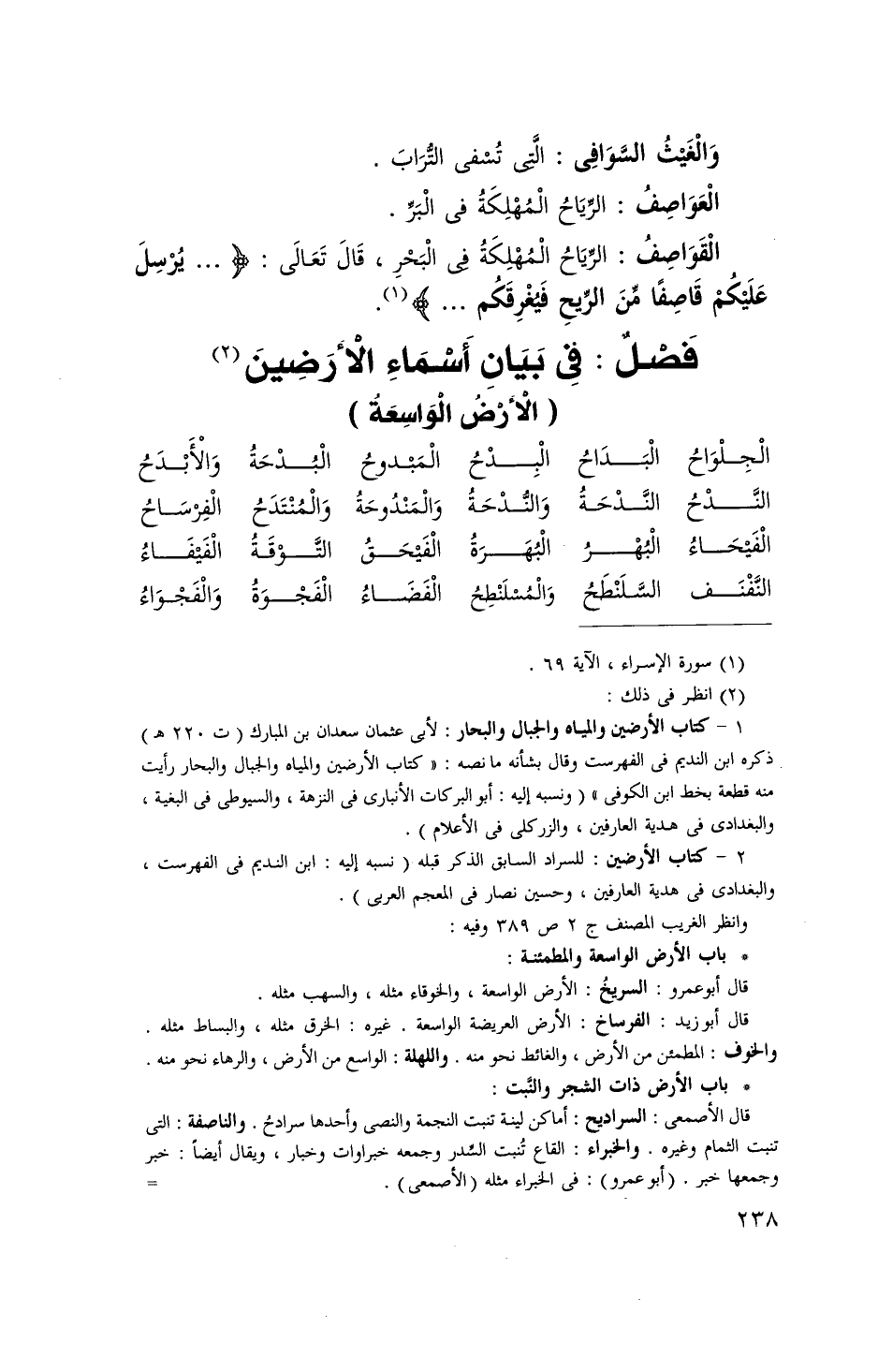 فصل فِي بَيَان أَسمَاء الْأَرْضين