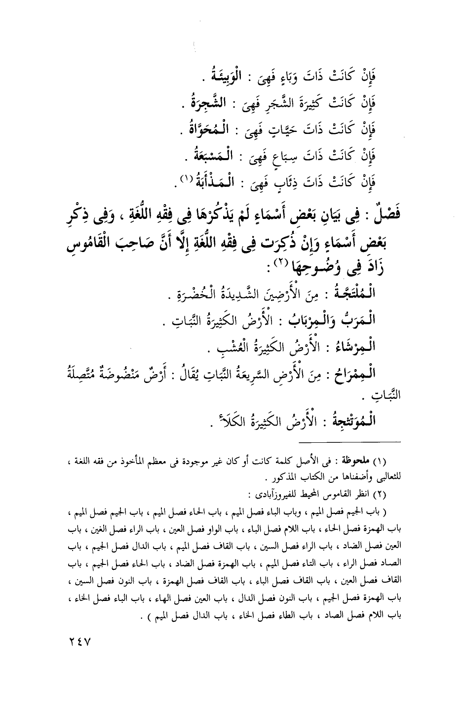 فصل فِي بَيَان بعض أَسمَاء لم يذكرهَا فِي فقه اللُّغَة وَفِي ذكر بعض أَسمَاء وَإِن ذكرت فِي فقه اللُّغَة إِلَّا أَن صَاحب الْقَامُوس زَاد فِي وضوحها