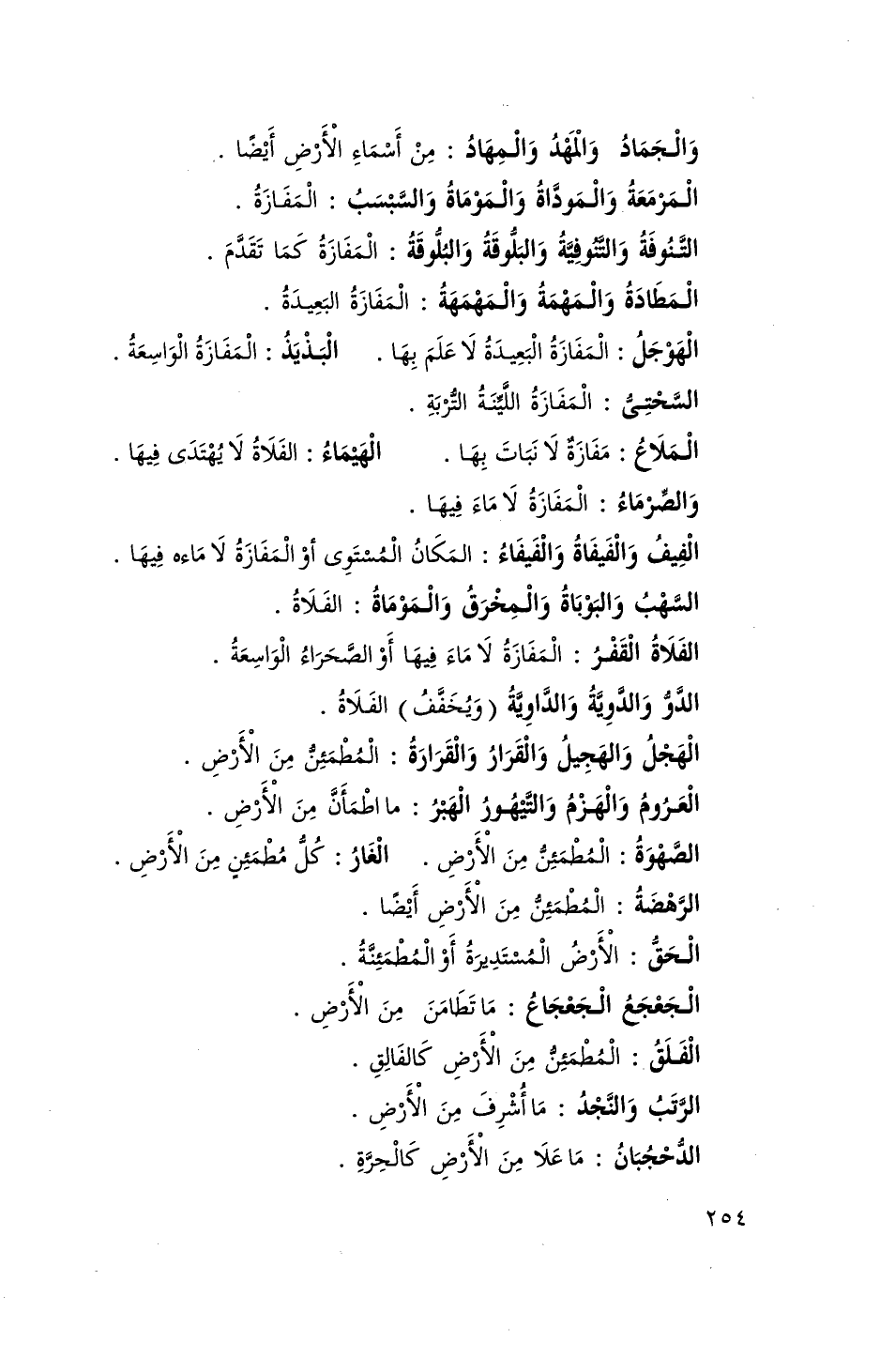 الْمَكَان المستوى أَو الْمَفَازَة لَا مَاءَهُ فِيهَا