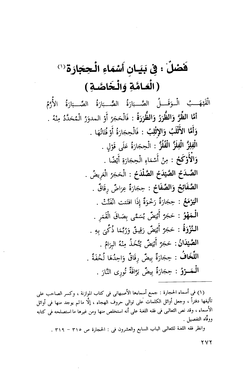 فصل فِي بَيَان أَسمَاء الْحِجَارَة