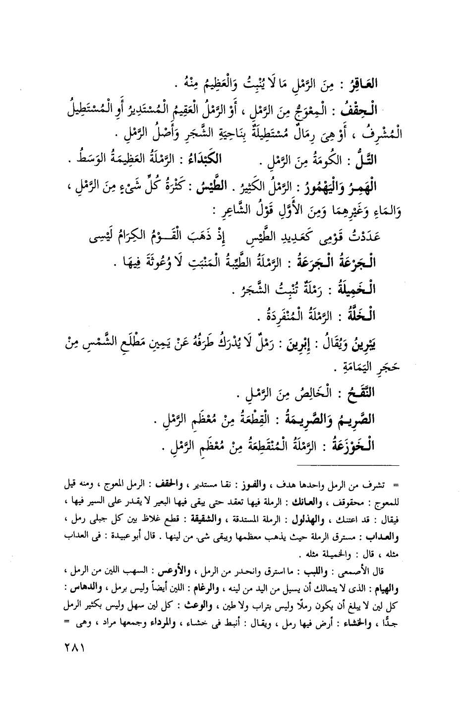 من الرمل مَالا ينْبت والعظيم مِنْهُ
