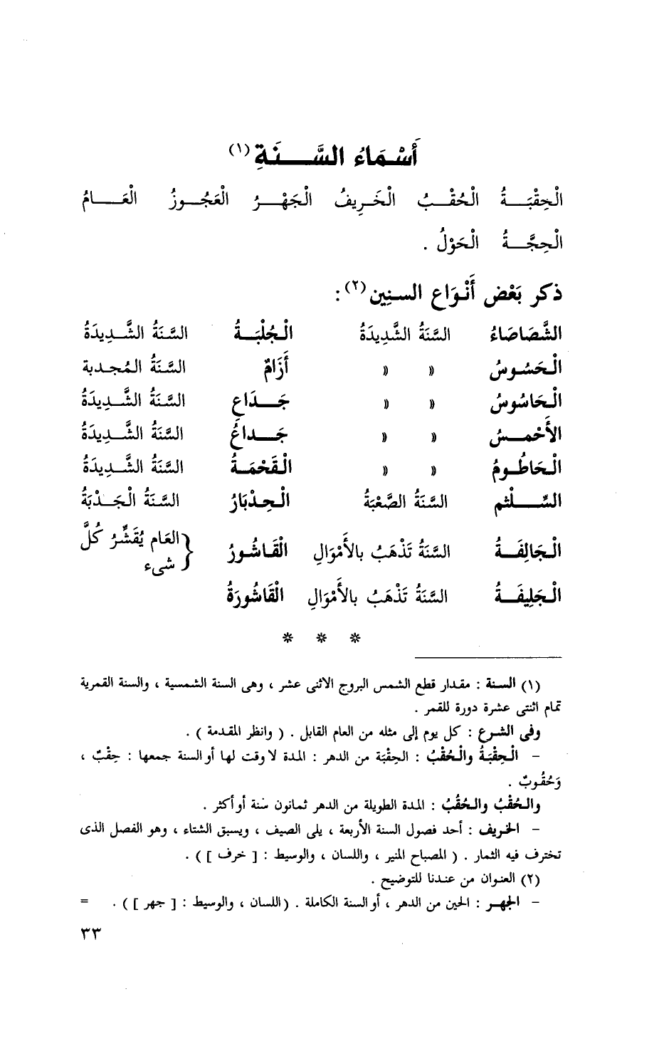 ذكر بعض أَنْوَاع السنين