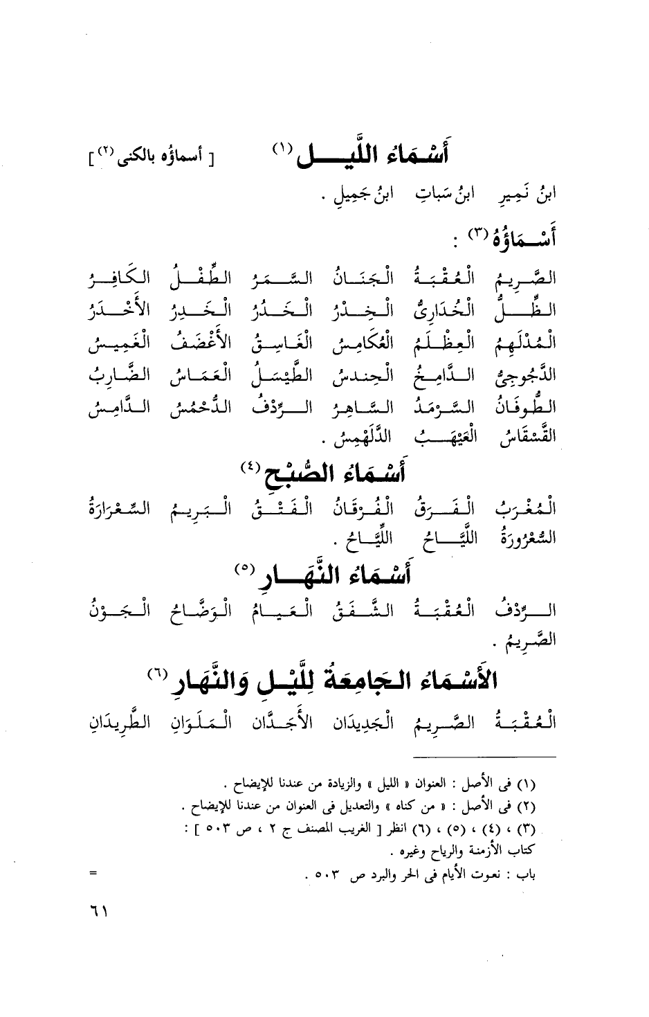 الْأَسْمَاء الجامعة لِليْل وَالنَّهَار