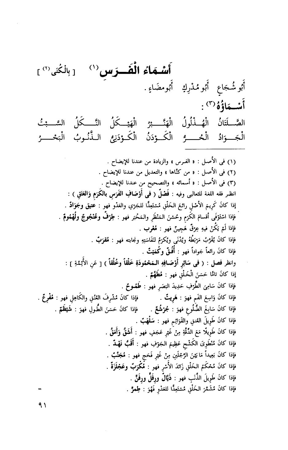 أَسمَاء الْفرس