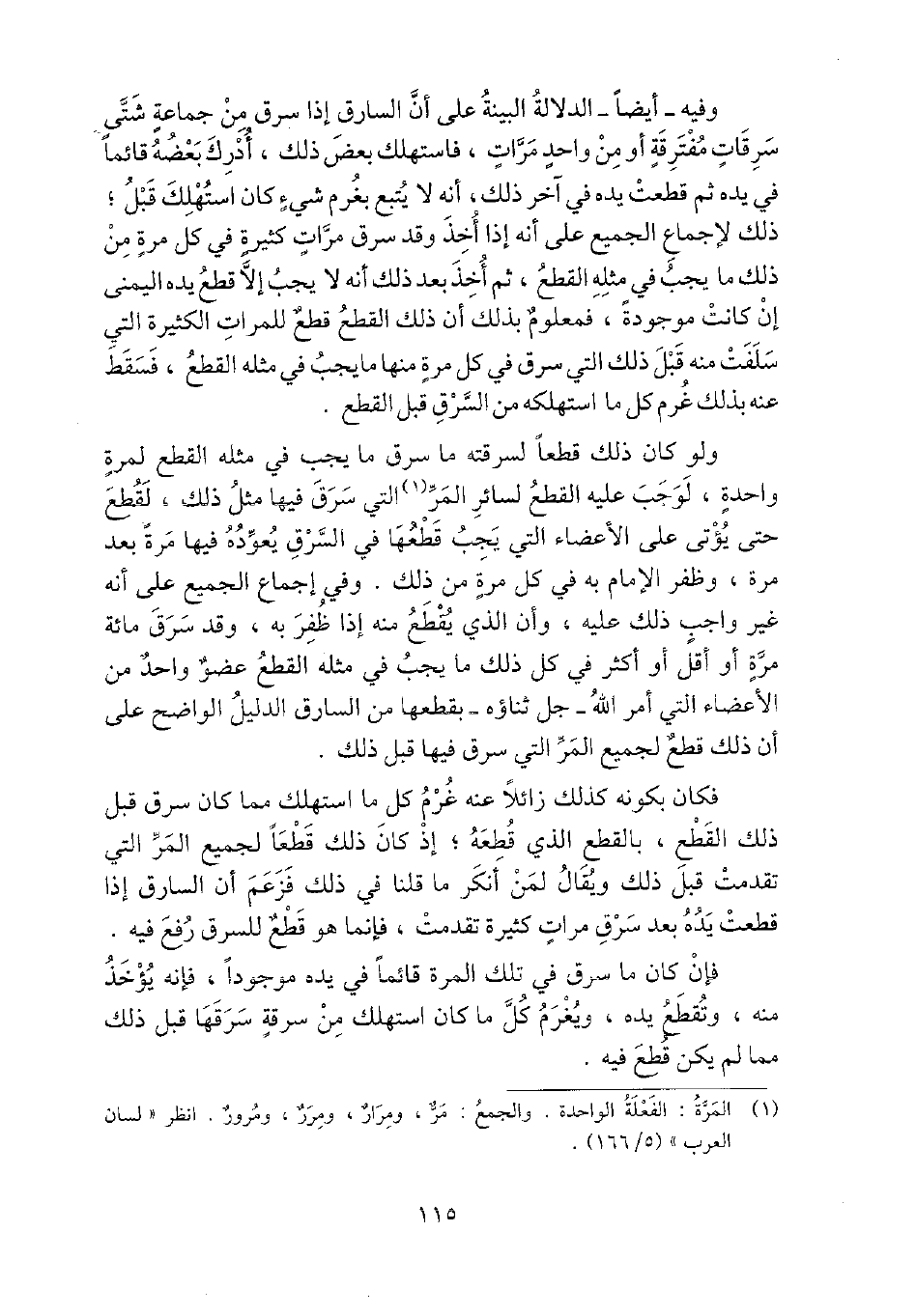 وَلَو كَانَ ذَلِك قطعا لسرقته مَا سرق مَا يجب فِي مثله الْقطع لمرة وَاحِدَة، لوَجَبَ عَلَيْهِ الْقطع لسَائِر المر الَّتِي سرق فِيهَا مثل ذَلِك، لقطع حَتَّى يُؤْتى على الْأَعْضَاء الَّتِي يجب قطعهَا فِي السرق يعودهُ فِيهَا مرّة بعد مرّة، وظفر الإِمَام بِهِ فِي كل مرّة من ذَلِك. وَفِي إِجْمَاع الْجَمِيع على أَنه غير وَاجِب ذَلِك عَلَيْهِ، وَأَن الَّذِي يقطع مِنْهُ إِذا ظفر بِهِ، وَقد سرق مائَة مرّة أَو أقل أَو أَكثر فِي كل ذَلِك مَا يجب فِي مثله الْقطع عُضْو وَاحِد من الْأَعْضَاء الَّتِي أَمر الله - جلّ ثَنَاؤُهُ - بقطعها من السَّارِق الدَّلِيل الْوَاضِح على أَن ذَلِك قطع لجَمِيع المر الَّتِي سرق فِيهَا قبل ذَلِك.