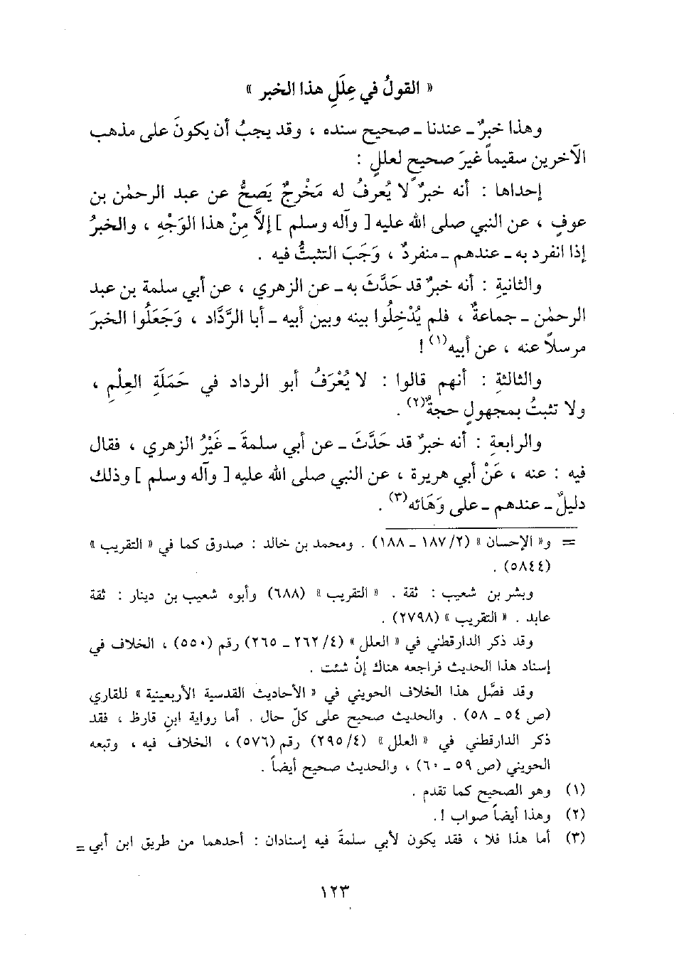 (" القَوْل فِي علل هَذَا الْخَبَر ")