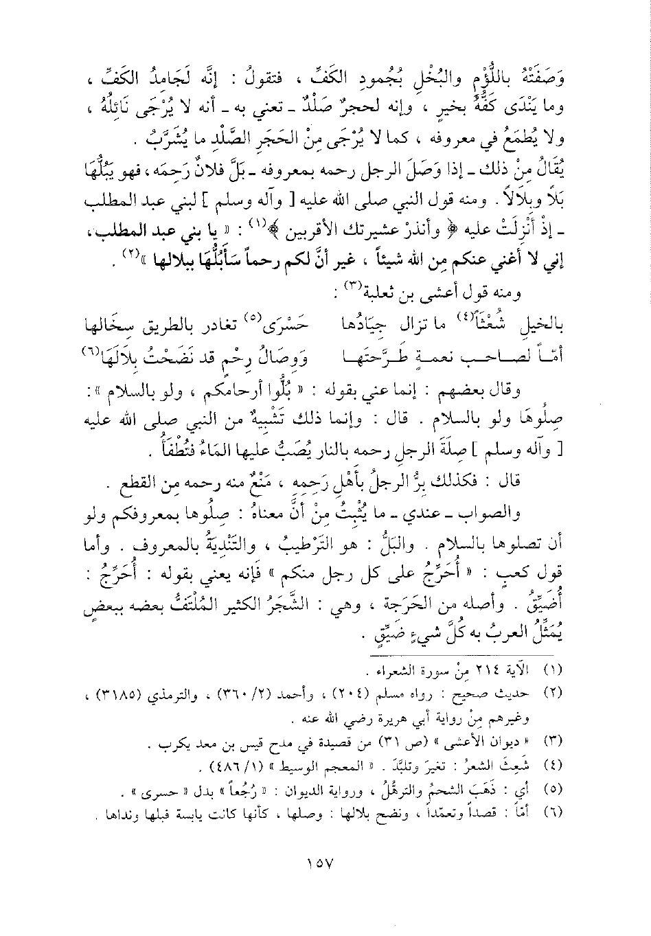 وَالصَّوَاب - عِنْدِي - مَا يثبت من أَن مَعْنَاهُ: صلوها بمعروفكم وَلَو أَن تصلوها بِالسَّلَامِ. والبل: هُوَ الترطيب، والتندية بِالْمَعْرُوفِ. وَأما قَول كَعْب: " أحرج على كل رجل مِنْكُم " فَإِنَّهُ يَعْنِي بقوله: أحرج: أضيق. وَأَصله من الحرجة، وَهِي: الشّجر الْكثير الملتف بعضه بِبَعْض يمثل الْعَرَب بِهِ كل شَيْء ضيق.