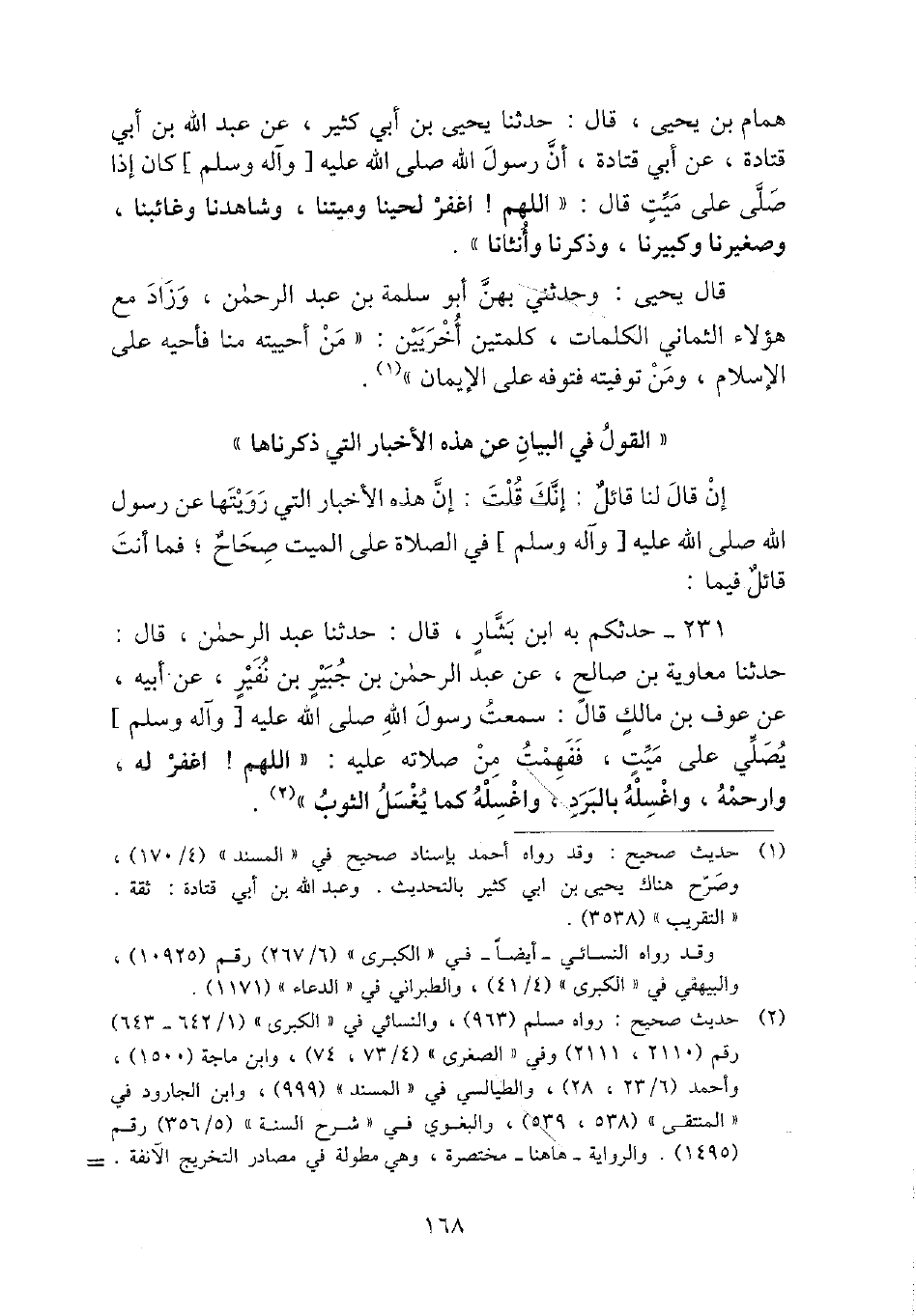 إِن قَالَ لنا قَائِل: إِنَّك قلت: إِن هَذِه الْأَخْبَار الَّتِي رويتها عَن رَسُول الله - صَلَّى اللَّهُ عَلَيْهِ وَسَلَّم َ - فِي الصَّلَاة على الْمَيِّت صِحَاح؛ فَمَا أَنْت قَائِل فِيمَا: