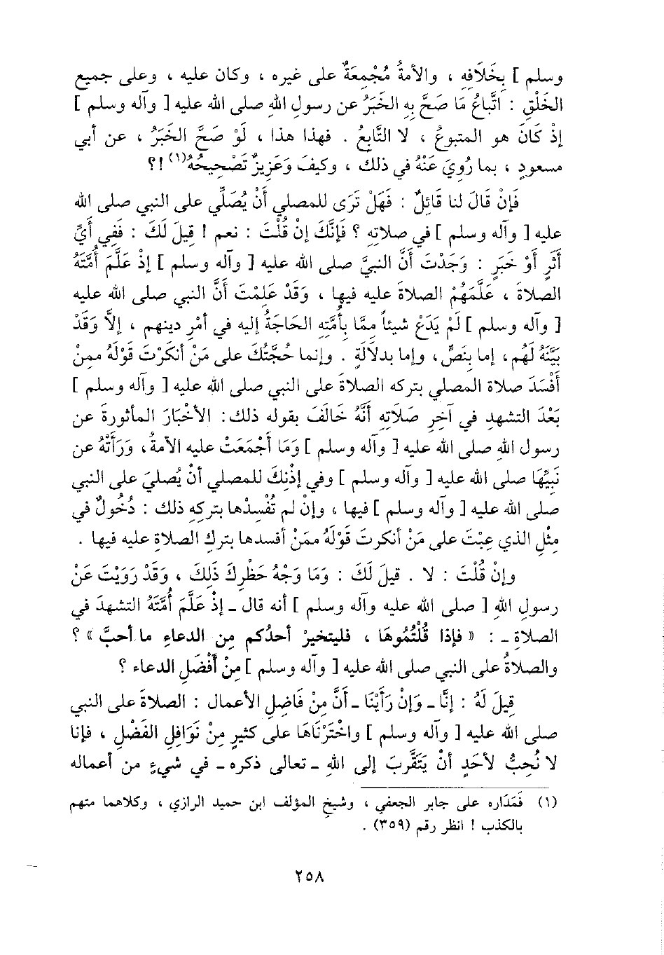 قيل لَهُ: إِنَّا - وَإِن رَأينَا - أَن من فَاضل الْأَعْمَال: الصَّلَاة على النَّبِي - صَلَّى اللَّهُ عَلَيْهِ وَسَلَّم َ - واخترناها على كثير من نوافل الْفضل، فَإنَّا لَا نحب لأحد أَن يتَقرَّب إِلَى الله - تَعَالَى ذكره - فِي شَيْء من أَعماله