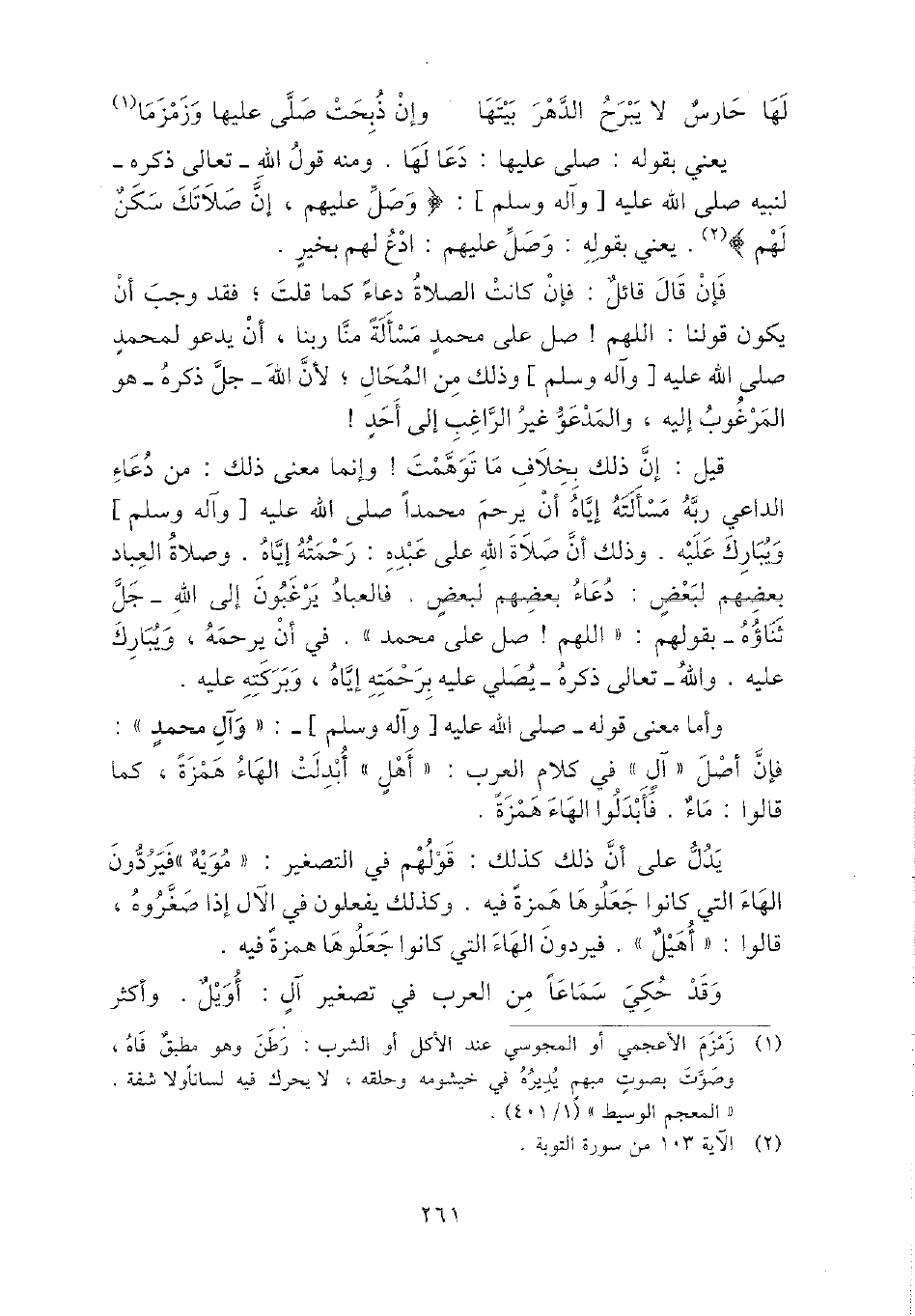 قيل: إِن ذَلِك بِخِلَاف مَا توهمت {وَإِنَّمَا معنى ذَلِك: من دُعَاء الدَّاعِي ربه مَسْأَلته إِيَّاه أَن يرحم مُحَمَّدًا - صَلَّى اللَّهُ عَلَيْهِ وَسَلَّم َ - ويبارك عَلَيْهِ. وَذَلِكَ أَن صَلَاة الله على عَبده: رَحمته إِيَّاه. وَصَلَاة الْعباد بَعضهم لبَعض: دُعَاء بَعضهم لبَعض. فالعباد يرغبون إِلَى الله - جلّ ثَنَاؤُهُ - بقَوْلهمْ: " اللَّهُمَّ} صل على مُحَمَّد ". فِي أَن يرحمه، ويبارك عَلَيْهِ. وَالله - تَعَالَى ذكره - يُصَلِّي عَلَيْهِ برحمته إِيَّاه، وبركته عَلَيْهِ.