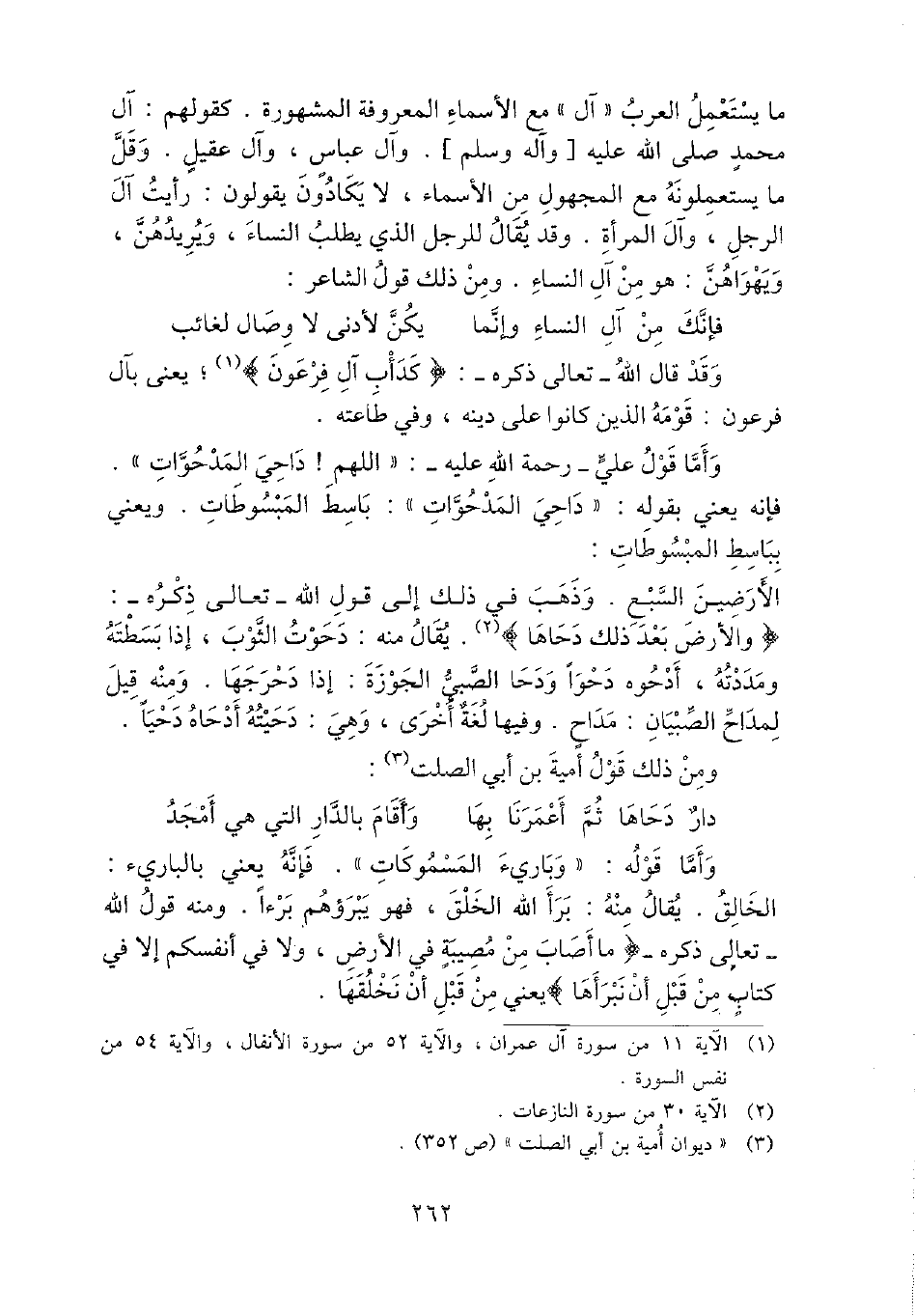 وَأما قَول عَليّ - رَحْمَة الله عَلَيْهِ -: " اللَّهُمَّ! داحي المدحوات ". فَإِنَّهُ يَعْنِي بقوله: " داحي المدحوات ": باسط المبسوطات. وَيَعْنِي بباسط المبسوطات: