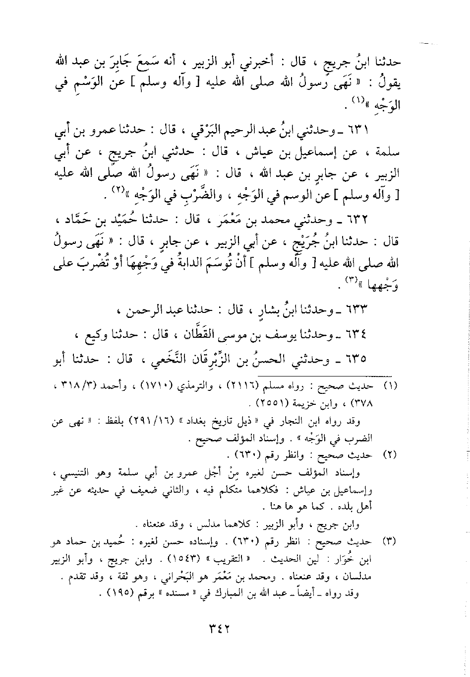 632 - وحَدثني مُحَمَّد بن معمر، قَالَ: حَدثنَا حميد بن حَمَّاد، قَالَ: حَدثنَا ابْن جريج، عَن أبي الزبير، عَن جَابر، قَالَ: " نهى رَسُول الله - صَلَّى اللَّهُ عَلَيْهِ وَسَلَّم َ - أَن توسم الدَّابَّة فِي وَجههَا أَو تضرب على وَجههَا ".