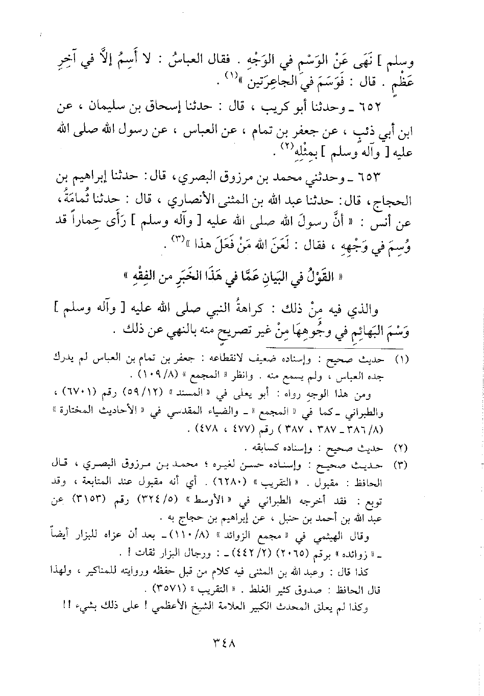 653 - وحَدثني مُحَمَّد بن مَرْزُوق الْبَصْرِيّ، قَالَ: حَدثنَا إِبْرَاهِيم بن الْحجَّاج، قَالَ: حَدثنَا عبد الله بن الْمثنى الْأنْصَارِيّ، قَالَ: حَدثنَا ثُمَامَة، عَن أنس: " أَن رَسُول الله - صَلَّى اللَّهُ عَلَيْهِ وَسَلَّم َ - رأى حمارا قد وسم فِي وَجهه، فَقَالَ: لعن الله من فعل هَذَا ".