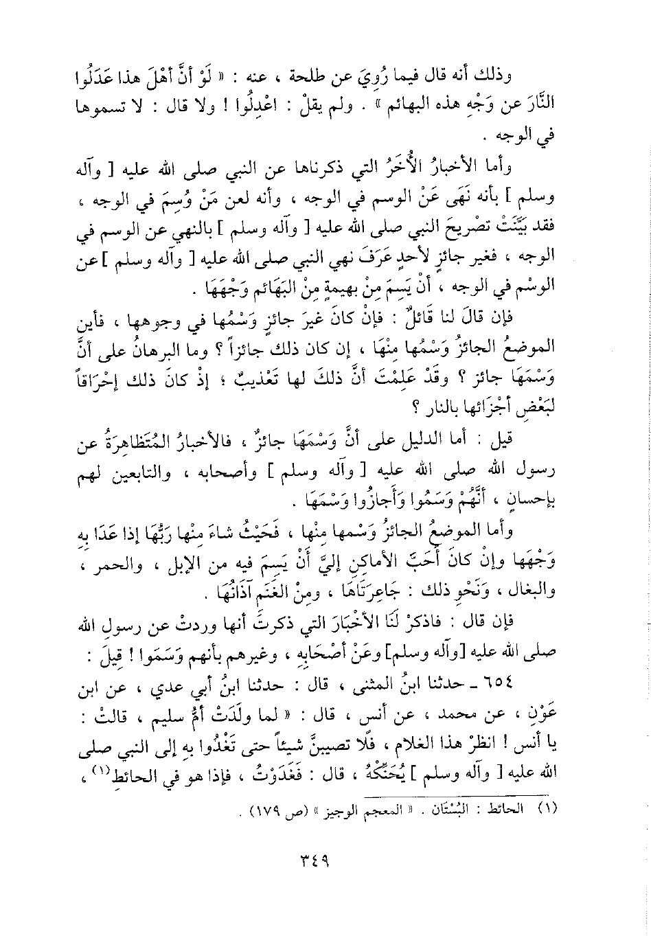 وَأما الْأَخْبَار الْأُخَر الَّتِي ذَكرنَاهَا عَن النَّبِي - صَلَّى اللَّهُ عَلَيْهِ وَسَلَّم َ - بِأَنَّهُ نهى عَن الوسم فِي الْوَجْه، وَأَنه لعن من وسم فِي الْوَجْه، فقد بيّنت تَصْرِيح النَّبِي - صَلَّى اللَّهُ عَلَيْهِ وَسَلَّم َ - بِالنَّهْي عَن الوسم فِي الْوَجْه، فَغير جَائِز لأحد عرف نهي النَّبِي - صَلَّى اللَّهُ عَلَيْهِ وَسَلَّم َ - عَن الوسم فِي الْوَجْه، أَن يسم من بَهِيمَة من الْبَهَائِم وَجههَا.